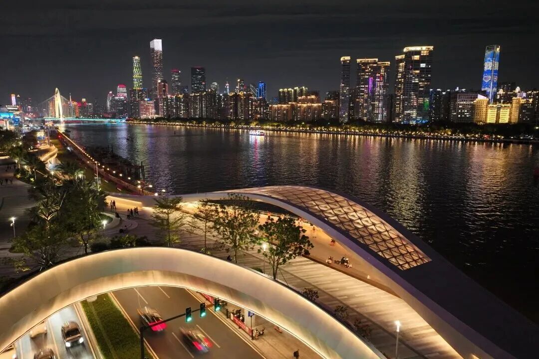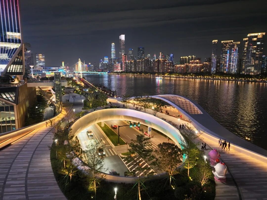 作为连接琶洲西区数字经济核心区与珠江滨水区的关键枢纽,该项目以“空间重构+文化赋能+民生普惠”为核心理念,重塑城市空间格局,串联广州塔大台阶、黄埔涌桥,构建起“可游可憩可消费”的全新珠江岸线,真正实现“还江于民、还岸于民、还景于民”,成为展现广州城市活力、人文温度与发展能级的重要窗口。