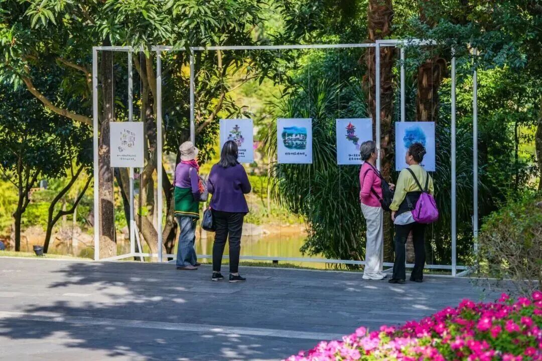 著名漫画家林帝浣以幽默细腻的笔触,将白云的山水灵秀、千年文脉与市井烟火凝于尺素之间。让白云山的晨雾、三元里的红墙、市井的烟火仿佛从画中走出,与身边绚烂绽放的矮牵牛相映成景。
