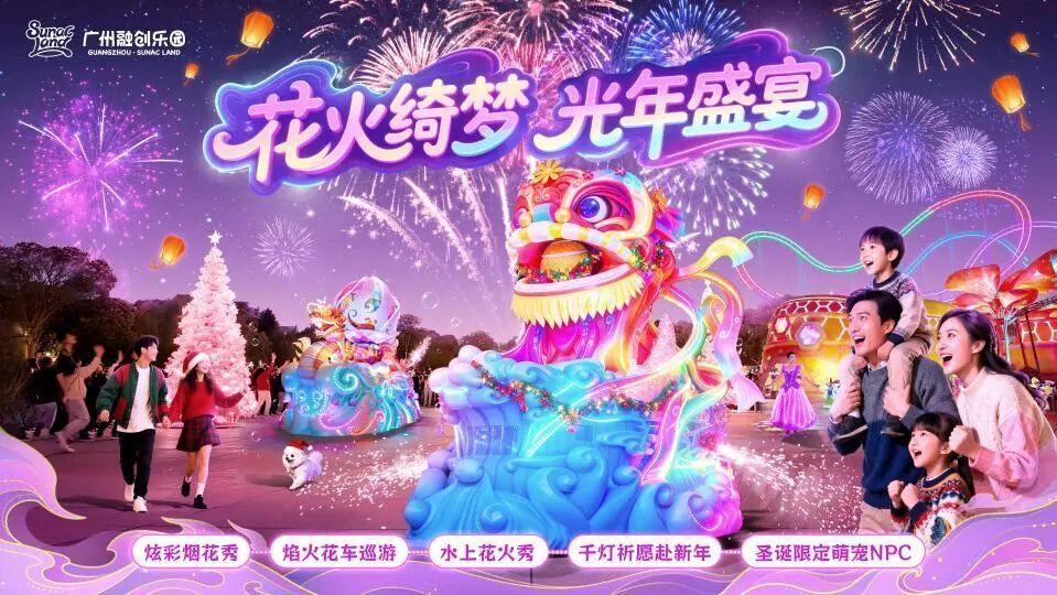 这个双旦假期不必远行,在广州融创乐园就能收获满满的仪式感与欢乐。湾区跨年,共赴这场“光年盛宴”。在璀璨的花火与温馨的灯火中,与重要的人一起告别2025,启航2026。