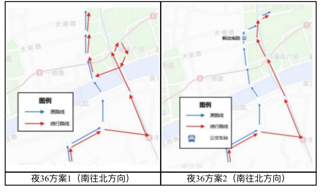(2)夜36路公交线路南往北绕行方案:
