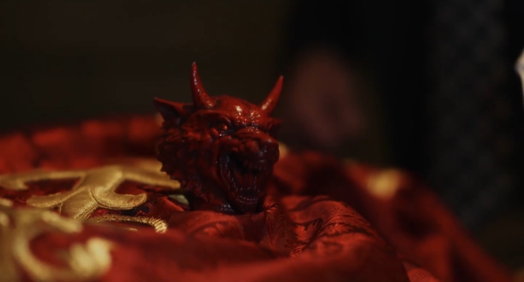 次日礼拜仪式上,威克斯在第一阶段布道结束后进入旁边的储物间休息,贾德则代替他上台传教。紧接着休息室内就传来倒地声,贾德第一个冲进房间,发现威克斯倒在地上,背部被撒旦狼头装饰刺入……