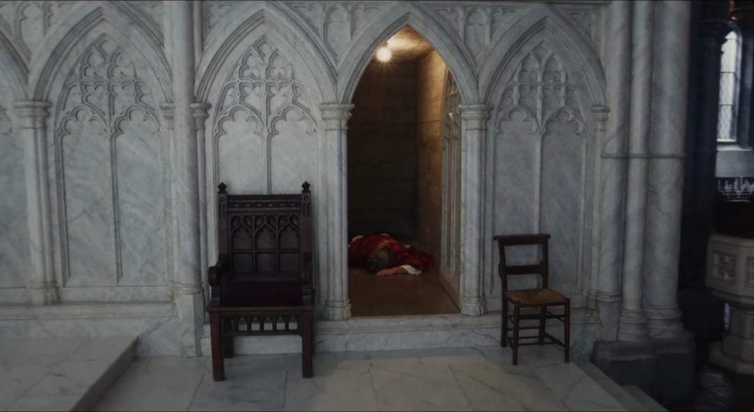 《利刃出鞘3》的核心案件是一场发生在教堂内的“伪密室谋杀”,密室三面是实墙,无暗门、通风管道等常规出入口,仅一侧连接配电箱,案发时所有人均在教堂内祷告,无人有机会在众目睽睽下进出并作案。